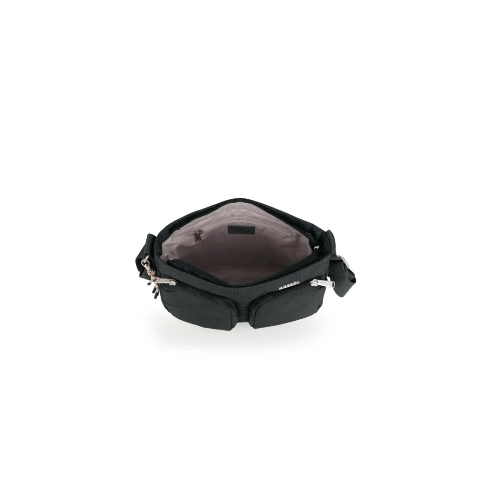 Praktikus külső zsebek: a táska elején két cipzáras mellékrekesz, hátulján pedig egy cipzáras zseb található. Ezek remek helyet biztosítanak a kulcsoknak, zsebkendőnek, bérletnek vagy más, gyorsan elérendő személyes tárgyaknak.