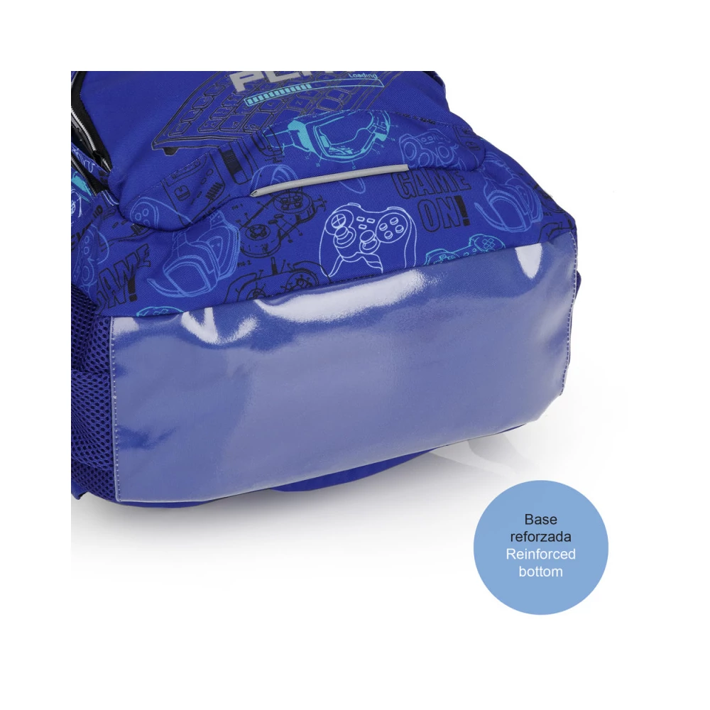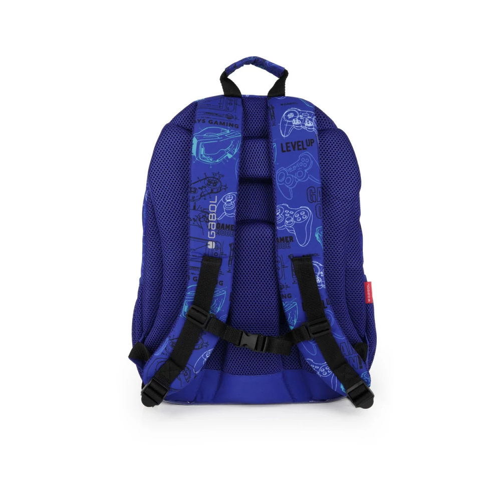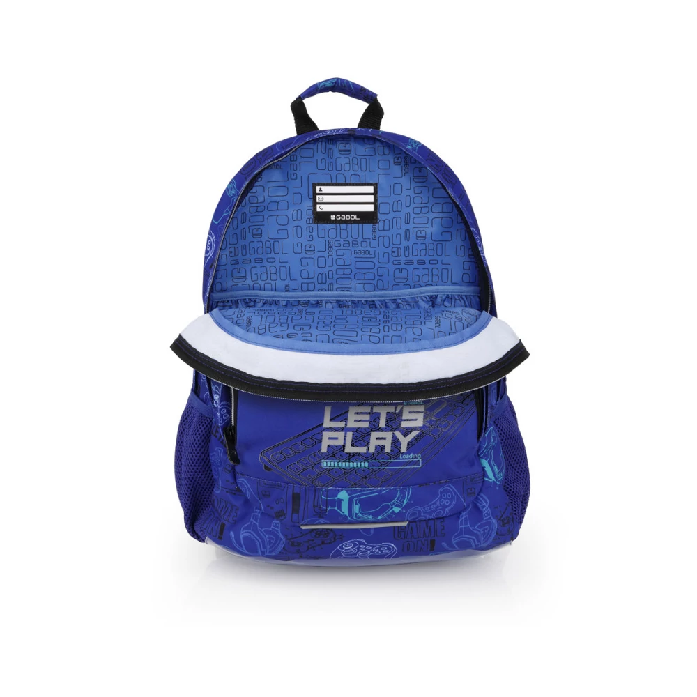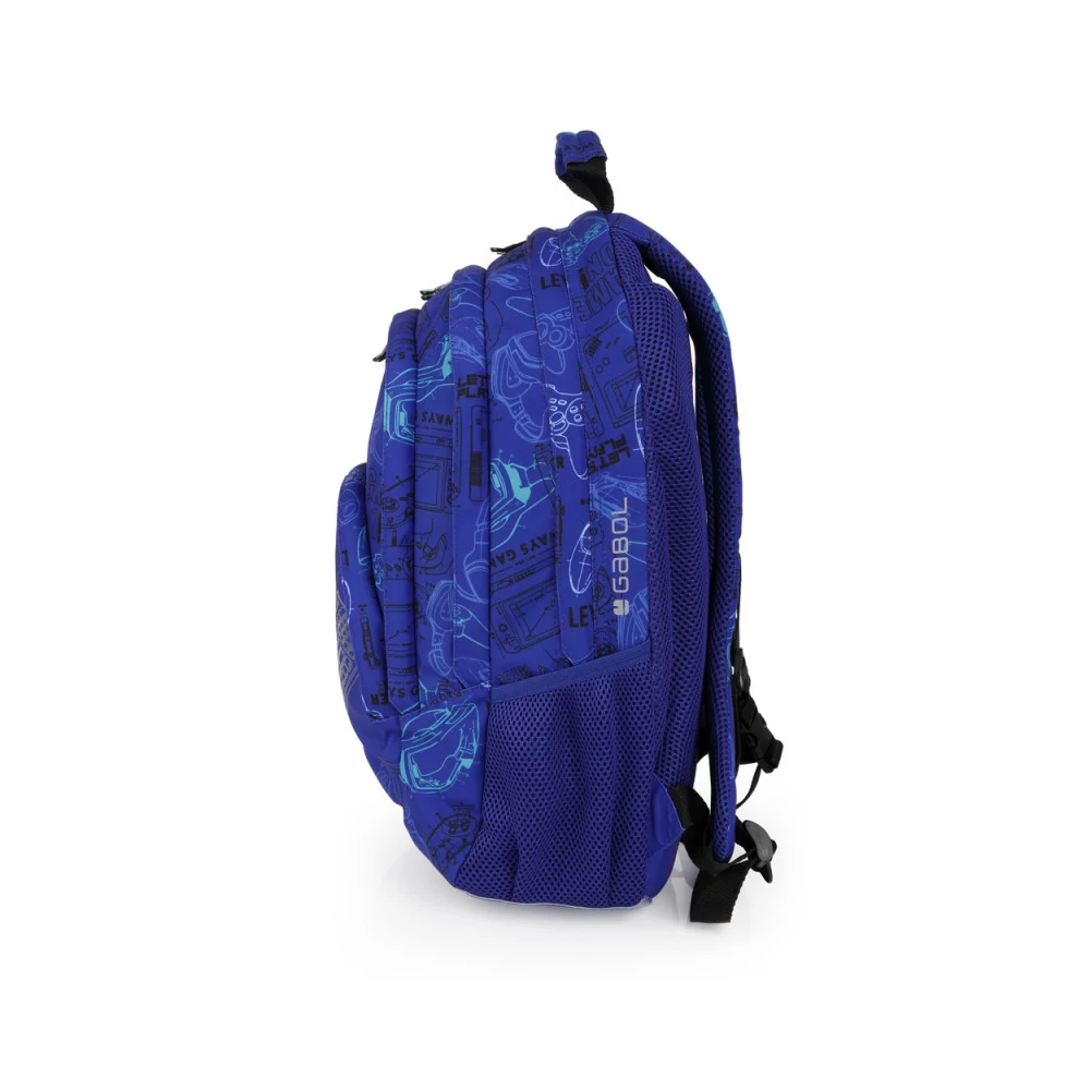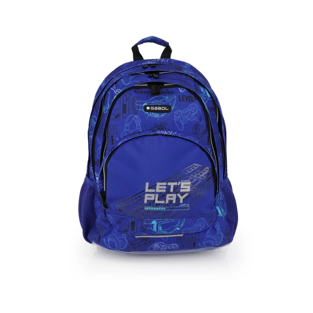 Gabol Gaming hátizsák. Ergonomikus hátrésszel és szivacsos vállpánttal rendelkezik, de kézben is hordható. A hátizsáknak két fő és két mellékrekesze van, valamint mindkét oldalán gumírozott zseb található a kulacsnak és egyéb tárgyaknak. Nagyobbik rekeszében névcímke is van, itt tárolhatjuk a mappákat, nagyobb füzeteket. A két elülső mellékrekesz alkalmas egyéb iskolai dolgaink, valamint személyes tárgyaink tárolására. 10 cm-es fényvisszaverő csíkkal a jobb láthatóságért.