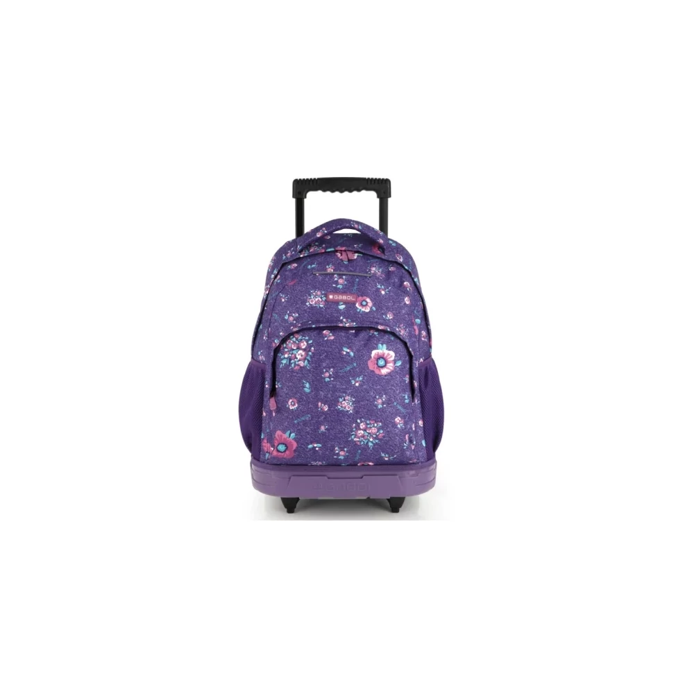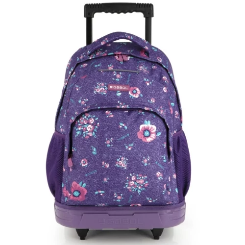 Gabol gurulós iskolatáska, melyet a húzókar segítségével magunk mellett húzhatunk, de háton is hordható. Az iskolatáska egy rekeszes, elöl cipzáras zsebbel, oldalt pedig egy-egy hálós kulacs- és esernyőtartóval ellátott. A cipzáraknál és a táska egész anyagán víztaszító réteg van, így véd az eső ellen. Elöl fényvisszaverővel, állítható párnázott vállpánttal, kézifogóval is ellátott.