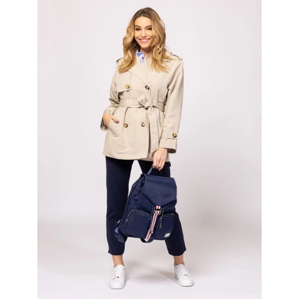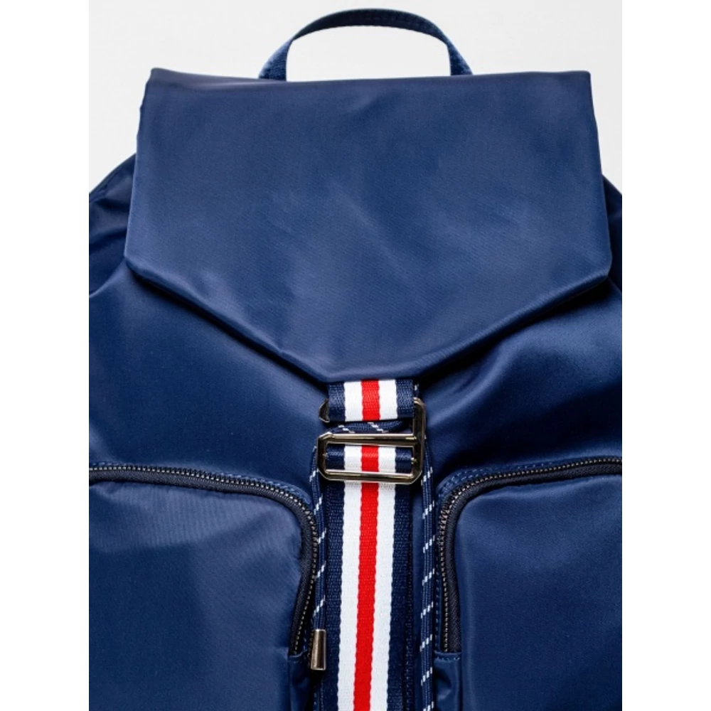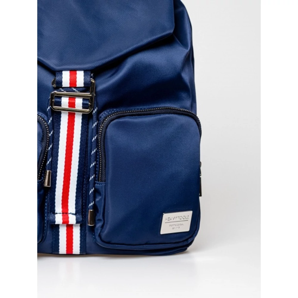 Heavy Tools közepes méretű női hátizsák, mely elegáns, stílusos megjelenést kölcsönöz viselőjének. Egy nagy rekesszel, elején két cipzáras zsebbel, állítható vállpánttal, zsinórral behúzható nyílással, csatos, dekor szalagos záródással. Belső zsebe is van. Anyaga: 100% poliészter, bélés: 100% poliészter