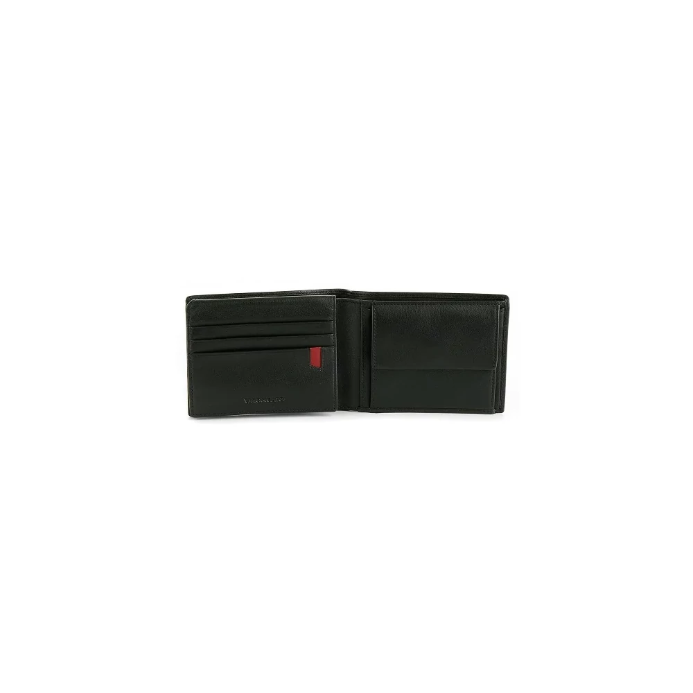 Belsejében bal oldalon egy kihajtható rész található, amely névjegyek, bankkártyák és igazolványok tárolására alkalmas. A felhajtható panel alatt egy nyitott rekesz, valamint 4 bankkártya-/igazolványtartó kapott hely, így a legfontosabb kártyák mindig kéznél vannak. Jobb oldalon egy patentos aprótartó gondoskodik a pénzérmék biztonságos tárolásáról.