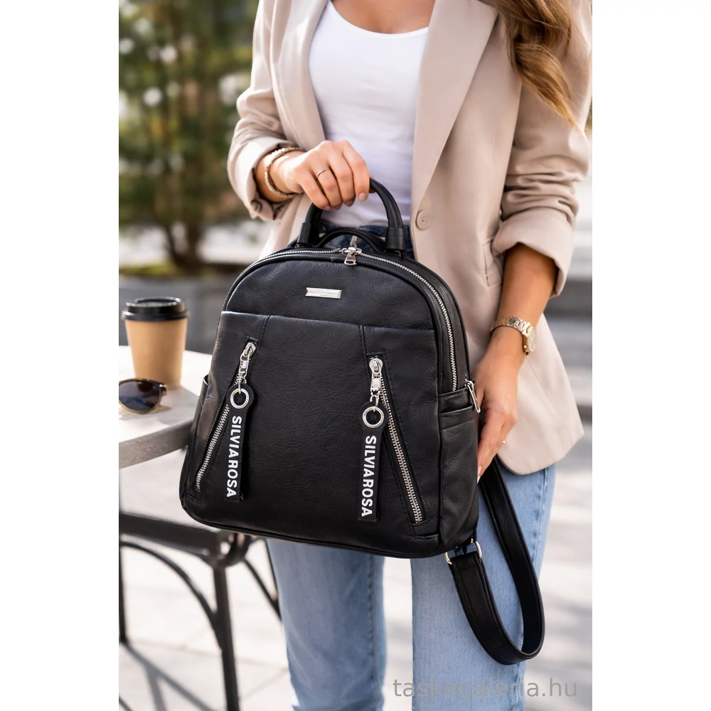Silvia Rosa női műbőr hátizsák – 31x32x15 cm, fekete